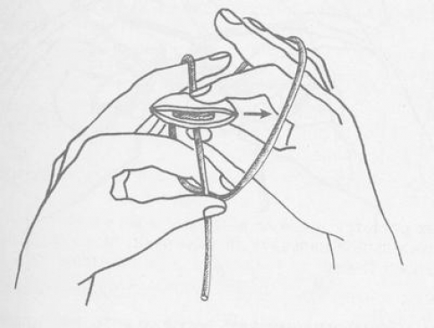 - Возьмите заправленный челнок в правую руку между большим и указательным пальцами и старайтесь его держать всегда параллельно им.