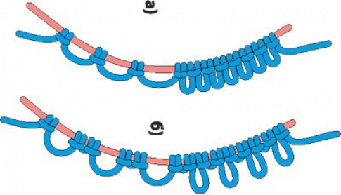Таким образом, выполняя заданное количество узлов по схеме, протягиваем нить и вяжем до тех пор, пока не образуется кольцо.