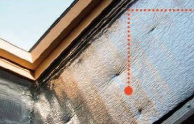 Важно! Устройство водоотводящего желоба над верхней линией мансардного окна – условие обязательное. Если его нет в комплекте, сделать желоб можно из сложенного пополам куска гидроизоляционного материала.