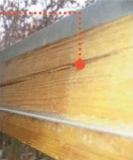 Так выглядит рама косо установленного мансардного окна вскоре после монтажа. От воды появились разводы, лак облупился, древесина посерела.