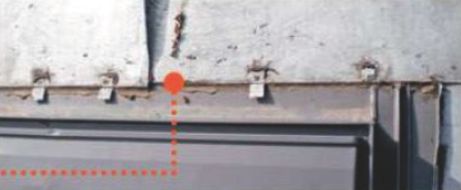 Ещё один пример неправильной установки мансардных окон в фальцевую кровлю. Вероятно, при монтаже использовали комплектующие от демонтированных блоков. Оклады как будто собраны по частям. Например, взяты гофрированные фартуки, предназначенные для установки мансардных окон в профильные кровельные покрытия (натуральную черепицу, металлочерепицу). Вместе с тем металлические рамы окладов просто заведены под стальные листы. Значит, протечек и сырости не избежать. По инструкции эти рамы должны быть закатаны в своеобразный фальц — водонепроницаемый шов. по своей герметичности не уступающий фальцевым соединениям основного покрытия.