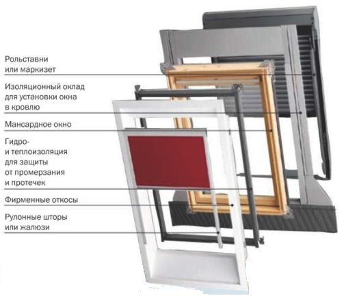 Мансардное окно напоминает слоёный пирог. Причём все «коржи» и «начинки» выпускают производители оконных изделий. Ведь помимо изоляции и герметизации наклонные окна для крыши нуждаются в затенении и затемнении. От обычных портьер в мансарде с её наклонными стенами- потолками толку мало. К счастью, ко всем мансардным окнам можно подобрать «точно по фигуре» шторки, жалюзи или рольставни. Потребителям предлагается богатый выбор аксессуаров, а также множество изделий и устройств, облегчающих открывание и закрывание створок.