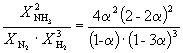 - Рассчитать общее давление, которое необходимо приложить к смеси 3 частей H 2 и 1 части N 2 , чтобы получить равновесную смесь, содержащую 10% NH 3 по объему при 400 o C. Константа равновесия для реакции