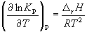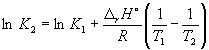 данноевыражение позволяет качественно оценитьвлияние Т на равновесие и константуравновесия.