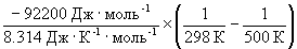 при 298 К K P = 6.0 10 5 , а f H o(NH 3) = –46.1 кДж. моль –1 . Оценитьзначение константы равновесия при 500 К.