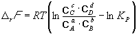 . Для взаимодействия между газообразными веществами часто пользуются выражением , в котором реагенты представлены равновесными парциальными давлениями p. Для упомянутой реакции