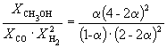 при 500 K равна K P = 6.09 10 –3 . Рассчитать общее давление, необходимое для получения метанола с 90% выходом, если CO и H 2 взяты в соотношении 1: 2.