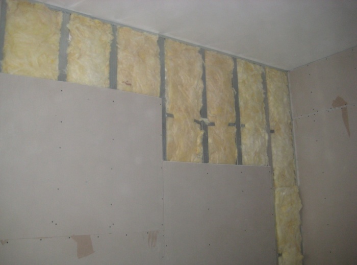 - Возможность утепления.Под фальш-стену можно также уложить слой теплоизоляционного материала, который сократить потери тепловой энергии через ограждающие конструкции сантехнического помещения.
