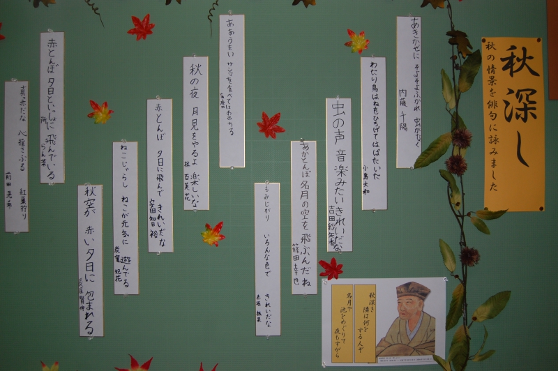 Нередко школьники получают на дом задание выучить или составить хокку. Эти короткие стихотворения легко читать и быстро запомнить. Это демонстрирует следующий пример хокку (2 класс — слишком раннее время, чтобы проходить японскую поэзию, однако в случае необходимости школьники могут обратиться к данному трехстишию):