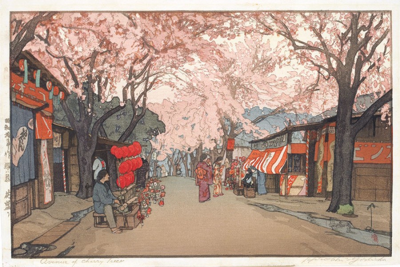 Человек глядит на вишни в цвету,