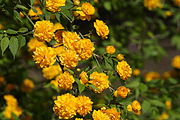 В конце весны зацветает керрия японская (Kerria japonica DC.). Время цветения с апреля по июнь. Керрия достигает в высоту 1-2 метра. Она цветет золотисто желтыми цветами с 5-ю лепестками, по форме напоминающими розу. Цветки керрии достигают 5-6 см в диаметре. За красоту цветов керрию иногда называют «Пасхальной розой».