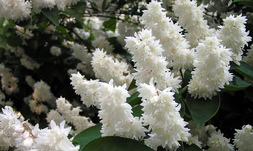 С конца весны — начала лета зацветает дейция (Deutzia Thunb.). Это невысокий кустарник высотой от 50 см до 1,5 метров. Отличается обильным и длительным цветением. Цветы дейции бывают белые, розовые, лиловые, пурпурные, часто собраны в соцветия. Встречаются сорта дейции с махровыми цветками. К сожалению, цветки дейции практически не имеют аромата.