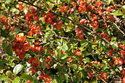 Цветки крупные, 3-5 см в диаметре, обычно ярко-красные, реже розовые или белые. Чтобы хеномелес лучше цвел, его надо периодически обрезать.